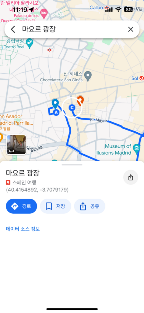 등록해놓은 장소를 Click하면 아래처럼 경로를 재설정하여 보실 수 있습니다.